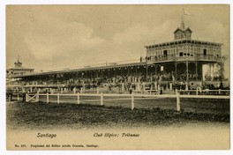 Santiago Club Hipico: Tribunas [fotografía] / Adolfo Conrads. Santiago : Adolfo Conrads , [Entre 1907 y 1920]. 1 tarjeta postal : colotipo, fotomecánico monocromo sobre papel ; 13,7x 9 cm. .