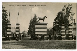 Santiago - Entrada al Club Hipico [fotografía] / Gallardo Hnos. Santiago : Gallardo Hnos. , [Entre 1911 y 1916]. 1 tarjeta postal : colotipo, fotomecánico monocromo sobre papel ; 14 x x 9 cm. .