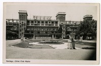 Santiago, (Chile) Club Hípico [fotografía]. Santiago : [Editor no identificado , 19uu]. 1 tarjeta postal : fotografía, monocromo, gelatina sobre papel ; 14 x 9 cm. .