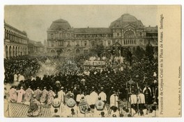 Processión de Corpus Cristi en la Plaza de Armas. Santiago [fotografía] / J. Allan. Santiago : J. Allan , [Entre 1910 y 1920]. 1 tarjeta postal : colotipo, fotomecánico monocromo sobre papel ; 13,8 x 8,8 cm. .