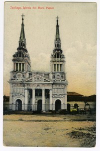 Santiago, Iglesia del Buen Pastor [fotografía] / C Kirsinger & Cia., Santiago : C. Kirsinger & Cia., [entre 1907 y 1910]. 1 tarjeta postal : colotipo, fotomecánico monocromo sobre papel ; 9 x 14 cm. .