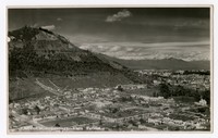 Chile - Santiago - Vista Parcial : "Ao fundo o Serro Sau Cristovau" [fotografía] / Foto Mora. Santiago : Foto Mora , [Entre 1930 y 1940]. 1 tarjeta postal : fotografía, monocromo, gelatina sobre papel ; 13,8 x 8,5 cm. .