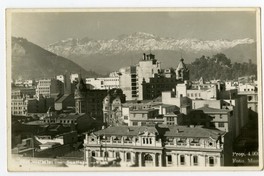 Chile - Santiago, Vista Parcial : [Se observa entre otros, el antiguo edificio del Ministerio de "Fomento", hoy nombrado de Obras Públicas (calle Morande N° 59), costado oriente del Palacio de La Moneda; edificios de la Compañía de Seguros "La Francesa" (calle Moneda N° 1020-4° piso); como telón de fondo, el Cerro San Cristóbal y la Cordillera de Los Andes] [fotografía] / Foto Mora. Santiago : Foto Mora , [Entre 1930 y 1940]. 1 tarjeta postal : fotografía, monocromo, gelatina sobre papel ; 13,3 x 8,3 cm. .