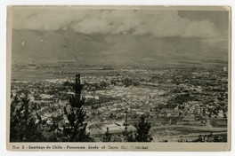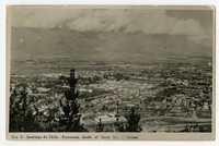 Santiago de Chile - Panorama desde el Cerro San Cristóbal [fotografía]. Santiago : [Editor no identificado], 1941. 1 tarjeta postal : fotografía, monocromo, gelatina sobre papel ; 13,5 x 8,3 cm. .