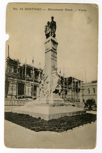 Santiago - Monumento Montt - Varas [fotografía] / Gallardo Hnos. Santiago : Galalrdo Hnos. , [Entre 1911 y 1916]. 1 tarjeta postal : colotipo, fotomecánico monocromo sobre papel ; 8,8 x 13,8 cm. .