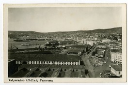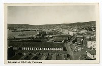 Valparaíso (Chile), Panorama [fotografía]. Valparaíso : [Editor no identificado , Entre 1939 y 1950]. 1 tarjeta postal : fotografía, monocromo, gelatina sobre papel ; 12,8 x 7,8 cm. .