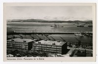 Valparaíso (Chile), Panorama de la Bahia [fotografía]. Valparaíso : [Editor no identificado , entre 1955 y 1965]. 1 tarjeta postal : fotografía, monocromo, gelatina sobre papel ; 13 x 7,7 cm. .