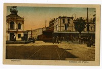 Materias: Automóviles antiguos y clásicos - Ferrocarril de Valparaíso a Santiago (Chile) - Grimm, Juan - Kern, Arturo - Valparaiso (Chile : Ciudad) - Historia - Fotografías - Arquitectura - Estaciones de ferrocarril - Tarjetas postales