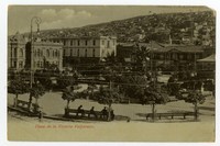 Materias: Arquitectura de viviendas - Arquitectura del paisaje - Plaza de La Victoria (Valparaíso, Chile) - Valparaiso (Chile : Ciudad) - Ross Edwards, Juana - Historia - Fotografías - Iglesia Católica - Residencias - Tarjetas postales - Urbanismo