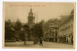 Costado poniente Plaza Victoria. Valparaiso. Chile [fotografía] Valparaíso : [Editor no identificado , entre 1915 y 1925]. 1 tarjeta postal : huecograbado, monocromo, gelatina sobre papel ; 14 x 9 cm. .