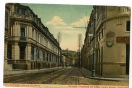 Valparaiso, Calle Blanco [fotografía] / Carlos Brandt. Valparaíso : Carlos Brandt , 1913. 1 tarjeta postal : medio tono, fotomecánico policromo sobre papel ; 13,7 x 8,7 cm. .