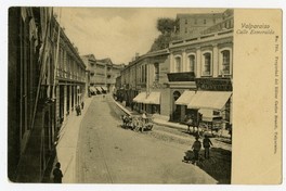 Valparaiso Calle Esmeralda [fotografía] / Carlos Brandt. Valparaíso : Carlos Brandt , [Entre 1899 y 1909]. 1 tarjeta postal : colotipo, fotomecánico monocromo sobre papel ; 14 x 9 cm. .