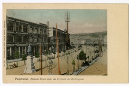 Valparaiso, Avenida Brasil antes del terremoto del 16 de agosto [fotografía] Valparaíso : Carlos Brandt , [Entre 1895 y 1905]. 1 tarjeta postal : colotipo, fotomecánico policromo sobre papel ; 14 x 9 cm. .
