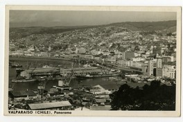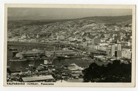 Valparaiso, Panorama [fotografía]. Valparaíso : [Editor no identificado , Entre 1930 y 1940]. 1 tarjeta postal : fotografía, monocromo, gelatina sobre papel ; 13 x 7,8 cm. .