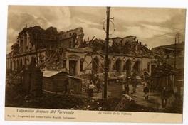 Valparaíso despues del Terremoto : El Teatro de la Victoria Carlos Brandt. Valparaíso : Carlos Brandt , 1906. 1 tarjeta postal : colotipo, fotomecánico monocromo sobre papel ; 14 x 8 cm. .