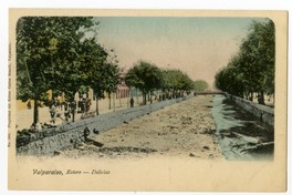 Valparaiso, Estero - Delicias [fotografía] / Carlos Brandt. Valparaíso : Carlos Brandt , [Entre 1899 y 1909]. 1 tarjeta postal : colotipo, fotomecánico policromo sobre papel ; 12,7 x 7 cm. .