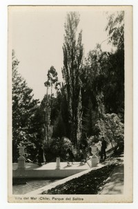 Viña del Mar (Chile), Parque del Salitre [fotografía] Chile ; [Editor no identificado , Entre 1939 y 1949]. 1 tarjeta postal : fotografía, monocromo, gelatina sobre papel fibra ; 9 x 14 cm. .