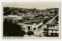 Viña del Mar (Chile) Panorama [fotografía]. Chile : [Editor no identificado , Entre 1934 y 1944]. 1 tarjeta postal : fotografía, monocromo, gelatina sobre papel fibra ; 14 x 9 cm. .