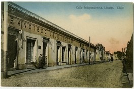 Calle Independencia. Linares. Chile [fotografía] / Juan M. Sepúlveda V. Santiago : Juan M. Sepúlveda V. , [Entre 1912 y 1922]. 1 tarjeta postal : colotipo, fotomecánico policromo sobre papel ; 14 x 9 cm. .