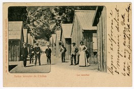 Baños termales de Chillan Las casuchas [fotografía] / Carlos Brandt. Concepción : Carlos Brandt , [entre 1895 y 1905]. 1 tarjeta postal : colotipo, fotomecánico monocromo sobre papel ; 14,2 x 7,3 cm .