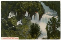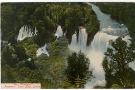 "Salto Pilmaiquen" [fotografía] / Oscar Mayr. Osorno : Oscar Myer, [entre 1905 y 1922]. 1 tarjeta postal : litografía, monocromo coloreado, gelatina sobre papel fibra ; 14 x 9 cm. .