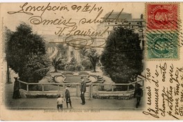 Jardines en la Avenida del Brazil [fotografía] / C. Kirsinger & Cia. Concepción : C. Kirsinger & Cia. , 1904. 1 tarjeta postal : colotipo, fotomecánico monocromo sobre papel fibra ; 14 x 9 cm. .