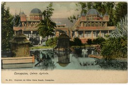 Concepcion, Quinta Agricola [fotografía] / Carlos Brandt. Concepción : Carlos Brandt , [Entre 1895 y 1905]. 1 tarjeta postal : colotipo, fotomecánico policromo sobre papel fibra ; 14 x 9 cm. .