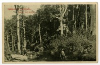 Termas de Tolhuaca. Camino del potrero [fotografía]. Chile : [Editor no identificado , Entre 1900 y 1910]. 1 tarjeta postal : medio tono, fotomecánico monocromo sobre papel fibra ; 14 x 9 cm. .