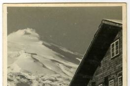 Pucón, (Chile), Refugio en el Volcán Villarrica [fotografía]. Chile : [Editor no identificado , Entre 1937 y 1947]. 1 tarjeta postal : fotografía, monocromo, gelatina sobre papel fibra ; 9 x 14 cm. .