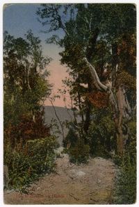 Bosque en Niebla [fotografía]. Chile : [Editor no identificado , 19uu]. 1 tarjeta postal : colotipo, fotomecánico policromo sobre papel fibra ; 9 x 14 cm. .