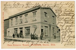 Ricardo Wiederhold: Casa importadora, de un variado giro comercial, fundada en 1896. La edición de tarjetas postales las realizó entre 1904 y 1906; Casa ubicada en la calle Eleuterio Ramírez, Osorno.
