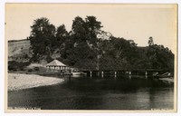 104. Entrada a la Poza [fotografía] / E. Karl. Puerto Varas : E. Karl , [Entre 1930 y 1940]. 1 tarjeta postal : fotografía, monocromo, gelatina sobre papel fibra ; 14 x 9 cm. .