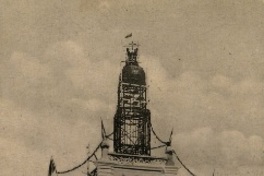 Ancud.- Catedral en construcción [fotografía] / R. Wolf. Puerto Montt : R. Wolf , 1908. 1 tarjeta postal : colotipo, fotomecánico monocromo sobre papel fibra ; 14 x 9 cm. .