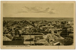Vista parcial de Punta Arenas [fotografía]. Chile : [Editor ni identificado , Entre 1915 y 1925]. 1 tarjeta postal : colotipo, monocromo sobre papel ; 14 x 9 cm. .