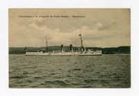 Chacabuco - en el puerto de Punta Arenas - Magallanes [fotografía] / Adolfo Kwasny. Punta Arenas : Adolfo Kwasny, [entre 1908 y 1910]. 1 colotipo : fotomecánico monocromo sobre papel ; 14 x 9 cm. .