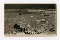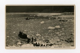 Desembarque de turistas el Ventisquero Plüschow, Seno Chico, Tierra del Fuego (chile) [fotografía] / Handler. Punta Arenas : Handler , [1930]. 1 tarjeta postal : fotografía, monocromo, gelatina sobre papel ; 14 x 9 cm. .