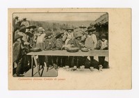 Costumbres chilenas Comida de Peones [fotografía] / Carlos Brandt. Concepción : Carlos Brandt , [Entre 1899 y 1909]. 1 tarjeta postal : colotipo, fotomecánico monocromo sobre papel ; 14 x 9 cm. .
