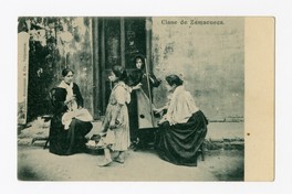 Clase de Zamacueca [fotografía] / Burmeister & Cia. Concepción : Burmeister & Cia. [entre 1902 y 1909]. 1 tarjeta postal : colotipo, fotomecánico monocromo sobre papel ; 14 x 9 cm. .