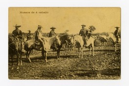 Huasos de á caballo [fotografía] / C. Kirsinger & Cia. Chile : C. Kirsinger & Cia., [entre 1901 y 1910]. 1 tarjeta postal : colotipo, fotomecánico monocromo sobre papel ; 14 x 9 cm. .
