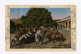 Costumbres rurales de Chile [fotografía] / Eggers & Cía. Valparaíso : Eggers & Cía. , 1908. 1 tarjeta postal : medio tono, fotomecánico policromo iluminado sobre papel ; 14 x 9 cm. .