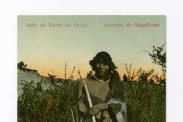 Indio de Tierra del Fuego - Estrecho de Magallanes [fotografía]. Chile : [Editor no identificado, Entre 1900 y 1910]. 1 tarjeta postal : colotipo, fotomecánico policromo sobre papel fibra ; 9 x 14 cm. .