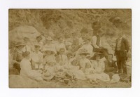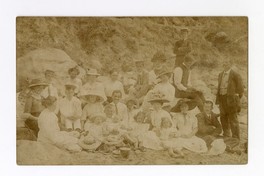 [Retrato de grupo familiar en la playa] [fotografía]. Chile : [Editor no identificado] , 1912. 1 tarjeta postal : fotografía, monocromo coloreado, gelatina sobre papel fibra ; 14 x 9 cm. .