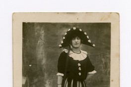 ["Fiesta de la Primavera", mujer joven en traje de fantasía] [fotografía]. Chile : [editor no identificado] , 1923. 1 fotografía : monocromo, gelatina sobre papel ; 9 x 14 cm. .