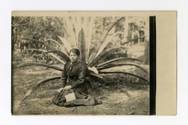 [Retrato de una mujer en el parque, posa junto a una planta Aloe Vera] Chile : [Editor no identificado , Entre 1904 y 1920]. 1 tarjeta postal : fotografía, monocromo, gelatina sobre papel ; 12 x 8 cm. .