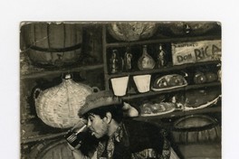 [En una cantina: Actor disfrazado de "verdejo", representación del vagabundo chileno] [fotografía]