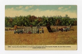 Chili - American Harvesting Machines are in general use throughout Chili and the Argentine Republic the great wheat producing countries of South America / [fotografía] : International Harvester Company of America (Incorporated) Chicago : International Harvester Company of America (Incorporated) , 1910. 1 tarjeta postal : medio tono, fotomecánico medio tono sobre papel ; 14 x 9 cm. .