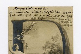 Dedicatoria manuscrita en el retiro: "Mi querido papá Le mando esta tarjeta para que vea que no me lvido de Ud Su hija que lo quiere María Miquel"; dirigida al Señor Don Damian 2° Miquel R. Gobernacion Rengo.