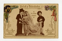 Salud y felicidades El primer encanto [fotografía]. Chile : [Editor no identificado , 19uu]. 1 tarjeta postal : medio tono, fotomecánico policromo sobre papel ; 14 x 9 cm. .