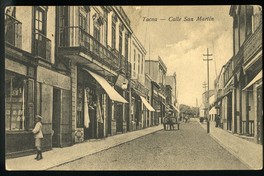 Tacna-Calle San Martín [fotografía]. [Tacna : Editor no identificado , Entre 1900 y 1910]. 1 tarjeta postal : colotipo, fotomecánico monocromo sobre papel ; 14 x 9 cm. .