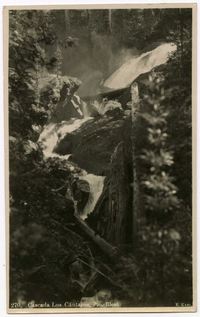 270. Cascada Los Cántaros, Pto. Blest [fotografía] / E. Karl. Puerto Varas : E. Karl , [Entre 1930 y 1940]. 1 tarjeta postal : fotografía, monocromo, gelatina sobre papel fibra ; 9 X 14 cm. .